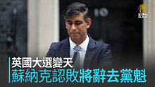 英國大選變天 蘇納克認敗辭去黨魁