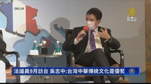 2022-08-23 20:20:20繼美國和日本等多國政要之後,法國參議員也即將在9月接力組團訪台。而中華民國駐法代表吳志中也在新唐人的專訪中指出,在與各國交流時,比起中共,台灣所擁有的中華傳統文化將會是一大優勢。