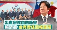 賴清德出席宗教自由峰會 台灣有責任回報國際社會