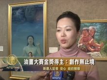 2011-11-29 10:54:09原籍加拿大的參賽選手陳肖平,獲得金獎。 ,油畫大賽金獎得主:創作無止境
