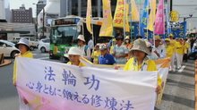 2018-07-21 12:43:037.20,大阪的部分法輪功學員在中共駐大阪總領事館前集會,打出「解體中共、制止迫害」的橫幅,呼籲相關政府、民眾關注在中國發生的對法輪功學員的的人權迫害,以及慘絕人寰的有組織的活摘器官販賣的犯罪事實,要求制止中共迫害法輪功。