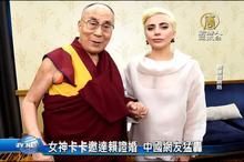 2016-06-27 12:59:21美國樂壇「搞怪女王」藝人卡卡Lady Gaga這兩天出席第84屆美國市長會議,她在一場座談會上與西藏精神領袖達賴喇嘛會面,無懼中共封殺,卡卡在臉書直播兩人對談過程,分享世界和平的理念。卡卡說「要讓世界運轉,希望是必要的」,然而有部分網友嗆聲,叫卡卡以後別再去中國開唱。