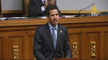2020-01-07 20:53:20委內瑞拉議會,週日選舉2020年議會領導人。馬杜洛政府聯合軍方,阻擋現任議長瓜伊多及其支持者進入。但瓜伊多在議會外,再次被推選為議長。