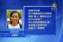 2014-09-08 21:21:17今天是中國的傳統節日中秋節,絕大多數的中國人,都會與家人待在一起,吃月餅、賞月。但是,很多被中共當局非法關押的良心犯,卻無法和家人團聚。中秋節前,他們的妻子紛紛舉牌,盼望她們的親人早日自由,與她們團圓。