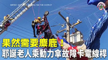 果然需要麋鹿!耶誕老人乘動力傘故障卡電線桿