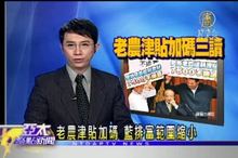 2011-10-18 21:19:12在馬英九總統拍板定案下,國民黨版的「老農津貼」新方案,今天出爐,每月津貼增加了316元;雖然財政部長李述德今天說,老農津貼等社福津貼,是隨著物價指數來連動,因此財源不會有問題,中央政府不會另外舉債支應。不過就算政府掛保證說:不會舉債貼補社福,但我們要如何看待在選前一再加碼的社福津貼?我們今天的焦點縱橫,為您探討。