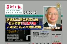 2011-02-11 21:05:20菲律賓說遣送台灣嫌犯到中國,是遵守一中政策,現在又傳出我國爭取馬來西亞免簽證待遇,也要看中共的臉色,馬國星洲日報10日報導指出,總理納吉考慮給台灣民眾落地簽,但要先知會中共,消息一出,朝野立委都相當氣憤,擔心造成骨牌效應,要外交部硬起來。