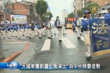 2015-09-27 20:50:09今天是中秋佳節,而法輪大法天國樂團受到台北市大同區延平里邀請,到著名的大稻埕歸綏戲曲公園演出。受到杜鵑颱風的影響,下午開始陸續下起雨來,不過,天國樂團還是在里長林定邦的邀請下,遊行了一個小時,為延平里中秋聯歡晚會造勢。