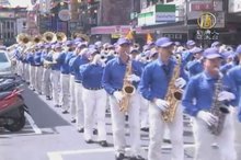法輪功學員踩街迎新年 點亮台北大稻埕
