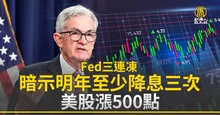 Fed三連凍 暗示明年至少降息三次 美股漲500點