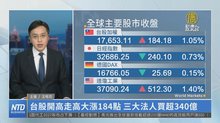 台股開高走高大漲184點 三大法人買超340億