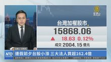 連假前夕台股小漲 三大法人買超162.4億