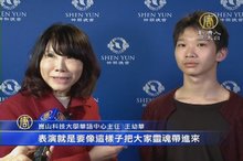 美國神韻世界藝術團25日晚間在高雄精湛的演出,崑山科大華語中心主任王幼華 每年看看每年感動,覺得每看一次,心靈就跟著經過一次洗禮,今年她特別邀請還在讀舞蹈科系的兒子一起來看,希望孩子在神韻中領略藝術演出傳遞的精神。