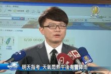 2014-06-30 12:42:17明天開始就是大學指考,氣象局預估,天氣將會晴朗炎熱,提醒考生多補充水分,至於,今天(30日),還是容易有午後雷陣雨發生,提醒外出民眾,攜帶雨具。