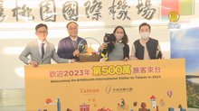 2023-11-03 07:37:22歡迎收看今天的好樣Formosa。桃園機場2日迎來今年來台第500萬名觀光遊客,這位幸運兒來自泰國,交通部觀光署長周永暉,送上價值萬元的交通住宿等大禮,同時希望她能常來台灣,為台灣行銷宣傳。