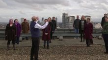 2021-04-10 15:08:11英國政府2月22日宣佈四個階段解封計劃,第三階段從5月17日開始,開放電影院、表演和體育競賽。近日,英國王家歌劇院合唱團,在劇院樓頂排演莫扎特和威爾第的經典歌劇,迎接劇院解封。