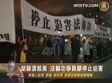 2011-01-19 11:44:2618日下午,正當胡錦濤抵達華府時,當地很多法輪功學員在白宮附近舉行了抗議活動,呼籲停止迫害, 懲辦元兇。
