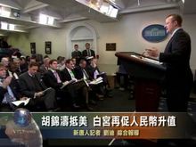 2011-01-06 22:08:58星期三(1月5號),美國白宮發言人吉布斯表示,人民幣匯率問題,將是胡錦濤這次訪美的主要議題,其他議題還將包括中國人權、朝鮮局勢以及全球經濟。
