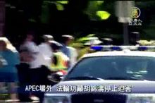 2011-11-14 21:08:26連續幾天,我們都為您報導在APEC峰會場外,法輪功學員和平抗議的訊息,星期天(13號)是APEC會議的最後一天,法輪功學員一樣在中共國家主席胡錦濤車隊出行的路上,拉起了長長的橫幅隊伍,要求中共立即停止對法輪功修煉者的殘酷迫害。