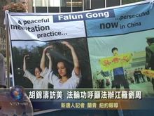 2009-09-22 07:31:24今天(9月21日),在胡錦濤到達紐約的第一天,法輪功學員一早就在華道夫酒店前拉起橫幅,向胡錦濤,也向國際社會發出呼籲,停止迫害。