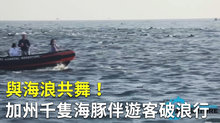 與海浪共舞!加州千隻海豚伴遊客破浪行