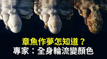 2019-10-04 14:51:42美國公共廣播電視公司(PBS)最近公布一段紀錄片的精彩片段,當中顯示,章魚在睡覺時,身體顏色不斷地快速變化。有海洋生物學家表示,這可能是牠正在做夢,而且夢境不斷發生變化。