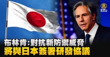 2022-01-07 09:27:42美國國務卿布林肯(Antony Blinken)今天表示,美國與日本將簽署一份新的研發協議,讓兩國更容易在對抗新防禦威脅上合作,包括極音速和太空能力。