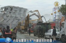 2016-02-10 19:02:25台南強震,進入第五天,目前仍舊有多人失聯,現場搜救人員是一絲一毫都不趕鬆懈,奮力搶救,希望能夠出現奇蹟。馬上將鏡頭轉到維冠大樓倒塌的現場,請記者,告訴我們目前的最新情況。唯同。