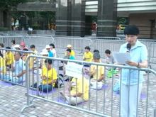 2011-08-18 07:08:26星期三,中共國務院副總理李克強訪港第二天,香港法輪功學員在他入住的灣仔君悅酒店外圍集會,要求立即停止對法輪功學員的殘酷迫害,以及法辦迫害法輪功的元兇江澤民、羅幹等人。 ,(粵語)李克強訪港 法輪功要求停止迫害
