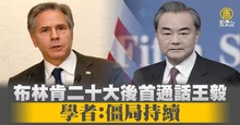 布林肯二十大後首通話王毅 學者:僵局持續