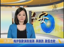 2017-01-18 07:08:02早安新唐人帶您看到,英國首相梅伊發表脫歐計畫,強調英國將朝「完全脫離歐盟」方向邁進,不過將尋求跟歐盟間的自由貿易,前兩天英鎊因為硬脫歐傳聞大跌,沒想到梅伊宣告計畫後,英鎊卻反彈大漲破2%。但歐洲主要股市都下跌。