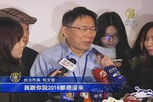 2015-12-18 20:09:47台北市長柯文哲昨天接受平面媒體專訪問時表示,2020年沒有打算選總統。今天柯文哲下午出席活動,再被媒體問,是否絕對不參選2020,柯文哲說,若現在問他,是!