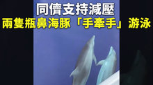 同儕支持減壓 兩隻瓶鼻海豚「手牽手」游泳