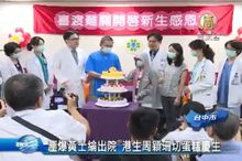 2015-07-31 12:55:11八仙塵爆發生至今已一個多月,在台中童綜合醫院治療,燒傷面積53%的黃士綸今天出院,另外,燒傷面積47%香港籍的周穎珊,復原狀況也非常良好,將於近日出院,今天院方慶祝黃士綸出院,也為8月3日生日的周穎珊提前慶生。