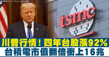 川普行情!四年台股漲92% 台積電市值翻倍衝上16兆