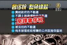 2011-03-05 21:10:13接下來,關注政府將開徵奢侈稅的相關訊息。為避免奢侈稅打房影響到無辜的一般市民,財政部追加增訂「豁免條款」,並且打算把奢侈稅實施前買進的不動產也列入課徵對象,房仲業者預料,投機客為了趕緊脫手賣房,可能造成短線房市異常波動,而藝人慕鈺華則是跳出來批評,政府下手太重。