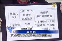 2011-03-04 21:04:07花蓮東華大學附近的學生租屋發生大火,傷亡慘重,民進黨團星期五上午,在立法院召開記者會,針對研考會在今年將學生校外住宿,安全性有保障,列為馬總統已實現的政見,卻發生了這麼不幸的意外,提出批評。