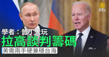 2022-06-17 20:30:21俄中領導人,普丁與習近平通話,隔天(16日)傳出拜登夏天可能與習近平通話。學者明居正分析,中共圖謀讓俄烏戰爭拖垮美俄,中共取得獨霸,日前發布「非戰爭軍事行動綱領」就是一手準備;要小心中共要求就台灣簽署美中第四公報。郭育仁分析,中共藉機圖謀推進至少五項策略。
