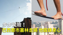 步步驚險!巴西都市叢林走繩 他鍛鍊身心