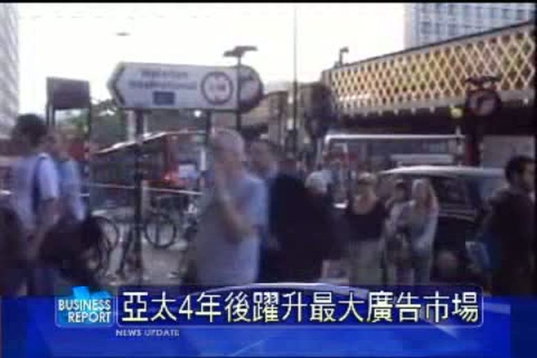 以上就是今天世界各地主要報紙的頭條新聞,接下來我們來關心亞洲財經消息。根據調查,由於歐美經濟疲軟,新興市場經濟成長強勁,使得廣告資金加速轉往新興國家,預期亞太地區在2014年將取代北美洲,成為全球最大廣告市場。 //asset3.ntdtv.com.tw/public/uploads/video/2010/09/14/20100914-170820.flv 亞太4年後躍升最大廣告市場|新唐人|政治|財經|社會|體育|影劇|娛樂|教育|醫藥|消費|新聞|民調|藝文|科技|時事|即時新聞|亞太|節目2010-09-13 22:50:49