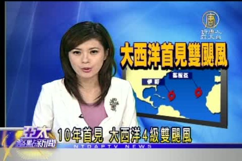 台灣即將迎來今年第一個登陸的颱風,那麼現在有兩個4級颶風正橫跨大西洋,成為大西洋10年來首見同時存在兩個四級颶風。雖然氣象預報員預測,這兩個颶風:茱麗亞與伊哥,不會對陸地構成威脅,但美國國家海洋暨大氣總署(NOAA)表示,自1995年起,颶風活動就變得不尋常的頻繁。 //asset1.ntdtv.com.tw/public/uploads/video/2010/09/17/20100917-194728.flv 10年首見|大西洋4級雙颶風|新唐人|政治|財經|社會|體育|影劇|娛樂|教育|醫藥|消費|新聞|民調|藝文|科技|時事|即時新聞|亞太|節目2010-09-16 22:02:57