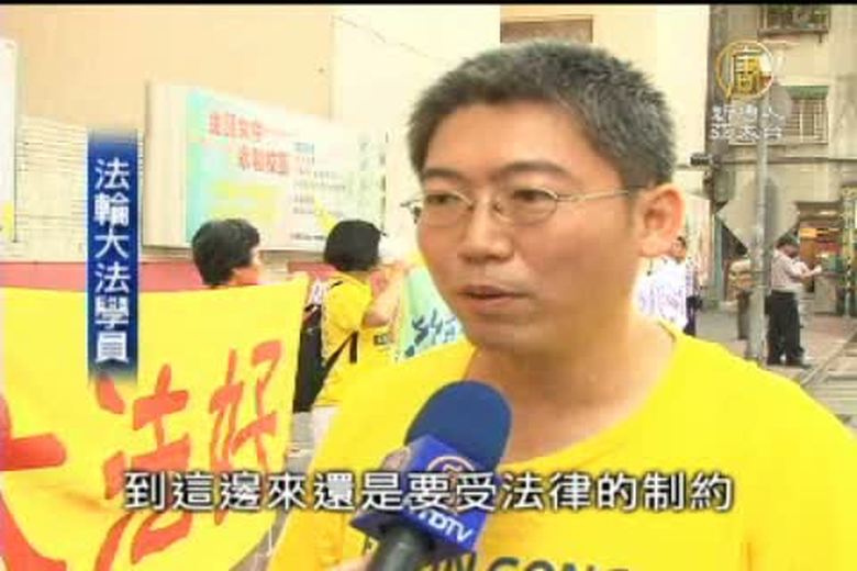 楊松在離開台北後前往苗栗,據了解法輪功學員也準備好,要像對之前來台幾位參與迫害的中共官員一樣,近距離對楊松喊出「楊松被告,停止迫害」的行動。可能是因為害怕自己在中國參與迫害法輪功、來台前就被告殘害人群罪的事情被揭開。楊松今天頻頻改動他的行程,甚至取消原訂要去三義木雕博物館的參觀活動。 //asset1.ntdtv.com.tw/public/uploads/video/2010/09/23/20100923-231774.flv 懼法輪功揭迫害真相|楊松頻改行程|新唐人|政治|財經|社會|體育|影劇|娛樂|教育|醫藥|消費|新聞|民調|藝文|科技|時事|即時新聞|亞太|節目2010-09-22 22:33:49