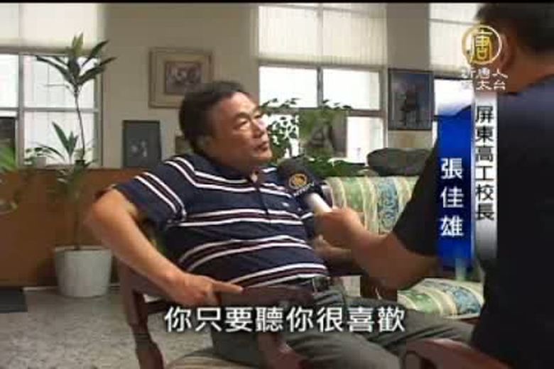 在屏東一所工業學校,有一位喜愛藝術的校長,將畫作、音樂與藝術理念帶進校園,通過校園環境與學生之間的互動與對話,營造不同於一般職業學校的校園氣氛,成為全台灣校園觀摩的重點學校。帶您一起去看看。 //asset3.ntdtv.com.tw/public/uploads/video/2010/09/23/20100923-230821.flv 屏工好藝術|營造溫馨大家園|新唐人|政治|財經|社會|體育|影劇|娛樂|教育|醫藥|消費|新聞|民調|藝文|科技|時事|即時新聞|亞太|節目2010-09-22 21:13:33