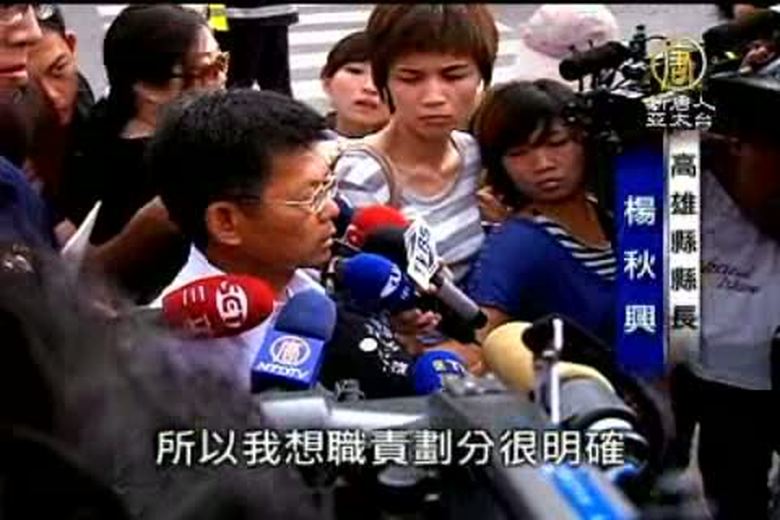 919水災,災後已經第4天了,高雄市長陳菊上午到下水道維管中心,了解全市抽水機和電力恢復的情形,對於治水責任,陳菊昨天說中央要負責 80%的說法引發國民黨立委反彈,今天上午,陳菊表示,該負的政治責任絕不推諉,強調治水必須朝流域整治、提高防洪標準著手。 //asset3.ntdtv.com.tw/public/uploads/video/2010/09/23/20100923-231760.flv 水漫港都|陳菊:政治責任不推諉|新唐人|政治|財經|社會|體育|影劇|娛樂|教育|醫藥|消費|新聞|民調|藝文|科技|時事|即時新聞|亞太|節目2010-09-22 22:06:54