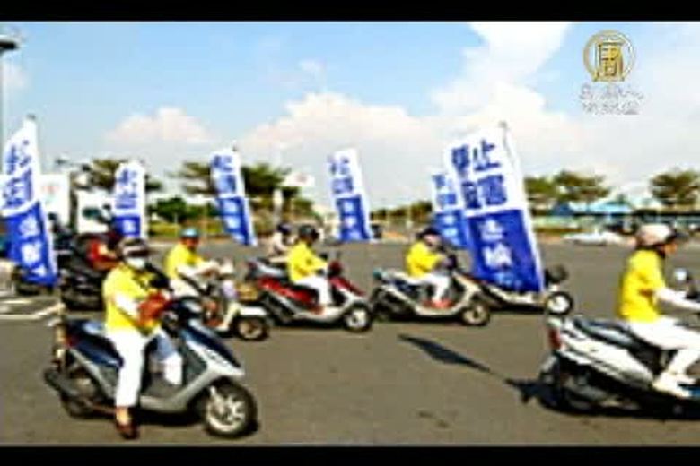 湖北省委副書記楊松,上午原訂要參觀台南一家知名企業,但又臨時取消,前往高雄夢時代購物廣場,從圖片中可以看到,高雄夢時代前的時代大道,當時是下午一點半,法輪功學員拉開約20米長,寫著「停止迫害、江澤民等被起訴」的橫幅。人在高雄的楊松,也並沒有按照預定參訪行程,只在夢時代停留約半小時,當楊松的座車離開時,法輪功學員舉著「楊松人權惡棍 台灣不歡迎你」的看板。至於楊松被刑告殘害人群罪,上午也有新的進展,高檢署已經分案辦理。 //asset2.ntdtv.com.tw/public/uploads/video/2010/09/25/20100925-245262.flv 高檢已分案|楊松南台灣行隱蔽低調|新唐人|政治|財經|社會|體育|影劇|娛樂|教育|醫藥|消費|新聞|民調|藝文|科技|時事|即時新聞|亞太|節目2010-09-24 22:38:38