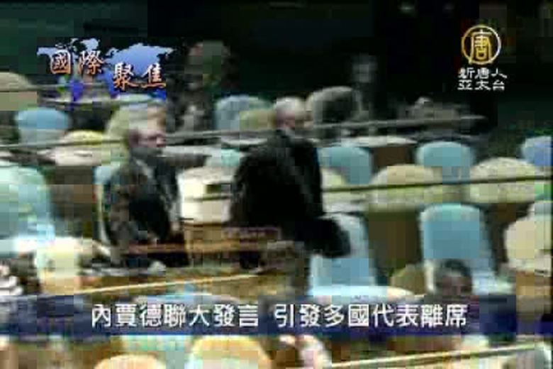 看到國際新聞焦點。星期四﹐伊朗總統艾哈邁迪‧內賈德在紐約第65屆聯合國大會上發表質疑“911”恐怖襲擊事件的言論,引發美國和西方多個國家的代表退出會場表示抗議。 //asset1.ntdtv.com.tw/public/uploads/video/2010/09/25/20100925-242043.flv 內賈德聯大發言|引發多國代表離席|新唐人|政治|財經|社會|體育|影劇|娛樂|教育|醫藥|消費|新聞|民調|藝文|科技|時事|即時新聞|亞太|節目2010-09-24 22:41:19