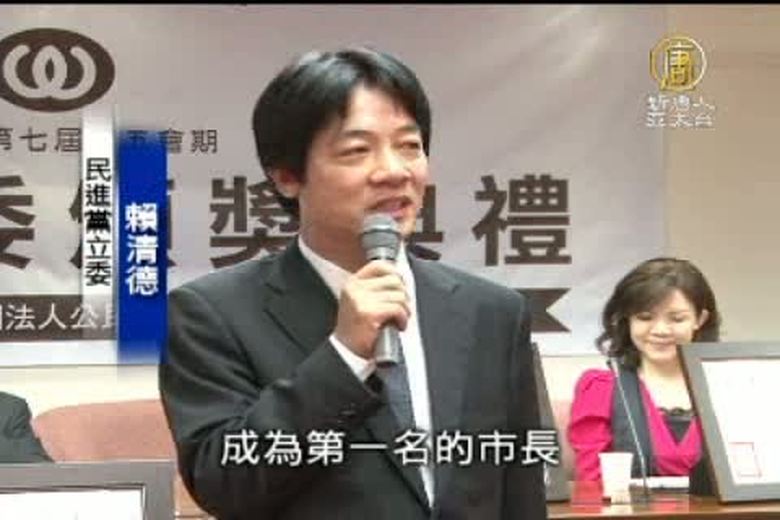 今天(24日)是立法院新會期開議的第一天,公民監督國會聯盟頒獎給上個會期被評選問政最認真的立委。國民黨立委趙麗雲和民進黨立委賴清德兩人問政表現最受肯定,已經連莊四次第一,至於司法及法制改革委員會問政最認真的委員,前三名竟然全部從缺。 //asset1.ntdtv.com.tw/public/uploads/video/2010/09/25/20100925-242034.flv 叫我第一名|公督盟頒發優秀立委|新唐人|政治|財經|社會|體育|影劇|娛樂|教育|醫藥|消費|新聞|民調|藝文|科技|時事|即時新聞|亞太|節目2010-09-24 22:17:44