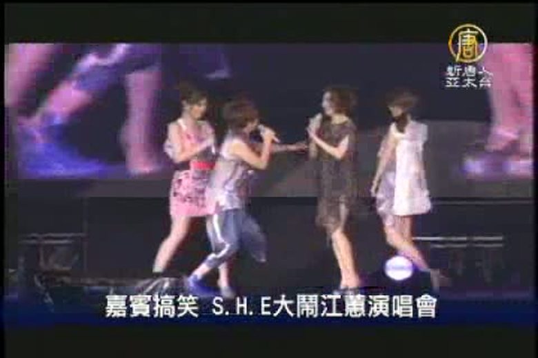 台語歌后江蕙,昨天在小巨蛋展開第3場演唱會,神秘嘉賓邀請S.H.E.,3個小女生邊唱邊圍著江蕙團團轉,讓江蕙難以招架。 //asset2.ntdtv.com.tw/public/uploads/video/2010/10/03/20101003-283334.flv 嘉賓搞笑|S.H.E大鬧江蕙演唱會|新唐人|政治|財經|社會|體育|影劇|娛樂|教育|醫藥|消費|新聞|民調|藝文|科技|時事|即時新聞|亞太|節目2010-10-02 22:54:15