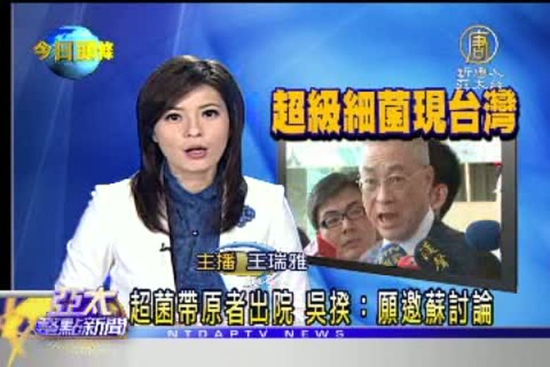 台灣首例NDM-1抗藥性細菌帶菌者的感染途徑,現在演變成羅生門。替中彈攝影師開刀的印度院方表示,這名攝影師之前曾到過其他國家,根本無法確定他在哪裡被感染,而且現在印度醫院要召回17個曾經動手術的病患,一個個檢查,反駁感染來源的說法。另外,針對疾管局前局長蘇益仁認為,讓帶原者出院可能會使得超級細菌擴散。行政院長吳敦義今天雖然力挺衛生署決策,不過也強調願意邀請蘇益仁一起交換意見,傾聽各界看法。 //asset2.ntdtv.com.tw/public/uploads/video/2010/10/07/20101007-301928.flv 超菌帶原者出院|吳揆:願邀蘇討論|新唐人|政治|財經|社會|體育|影劇|娛樂|教育|醫藥|消費|新聞|民調|藝文|科技|時事|即時新聞|亞太|節目2010-10-06 22:01:36