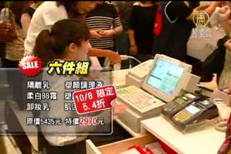 週年慶一波接一波,除了北部掀起百貨大戰,中南部百貨公司也開始進入檔期,刻意選在非假日開跑,非但不影響買氣,反而引來更多搶購人潮。女性消費者最愛的保養美妝系列,也推出不同促銷好康組合;想要成為百貨週年慶最大贏家,可得睜大眼、算仔細。 //asset1.ntdtv.com.tw/public/uploads/video/2010/10/09/20101009-313319.flv 日系百貨週年慶|非假日開跑不減人潮|新唐人|政治|財經|社會|體育|影劇|娛樂|教育|醫藥|消費|新聞|民調|藝文|科技|時事|即時新聞|亞太|節目2010-10-08 21:04:21